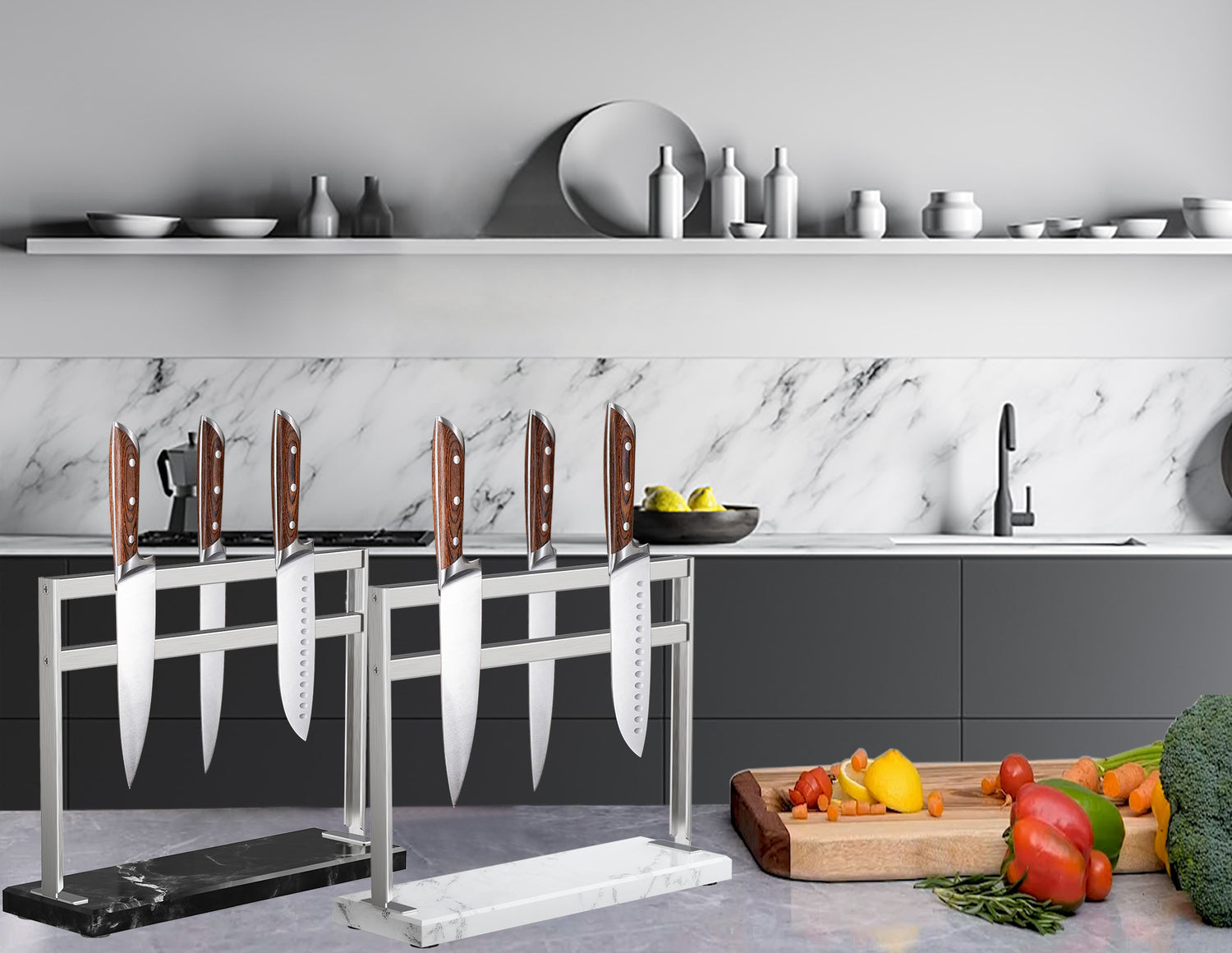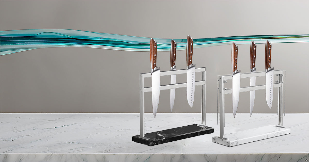 YIIYIIN Magnetic Knife Block with Marble Base - Double Sided Magnetic Knife Stand - Magnetic Knife Holder - Kitchen Knife Storage - Knife Holders for Counter Top - Black